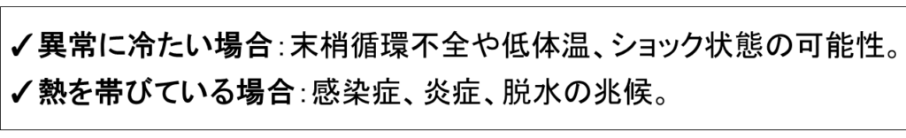 ☆ケアへの応用ポイント:皮膚温の異常を感じたら看護師や医師に早急に報告しよう!