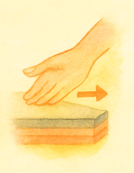 手のひらや指の腹を皮膚の表面に軽くすべらせるように触れ、「カサつき」や「ざらつき」をチェックしましょう。利用者の皮膚を傷つけないようにやさしく行うことが大切です。
