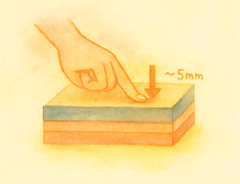 指の腹で皮膚を約5mm程度、10秒間軽く圧迫して行います。