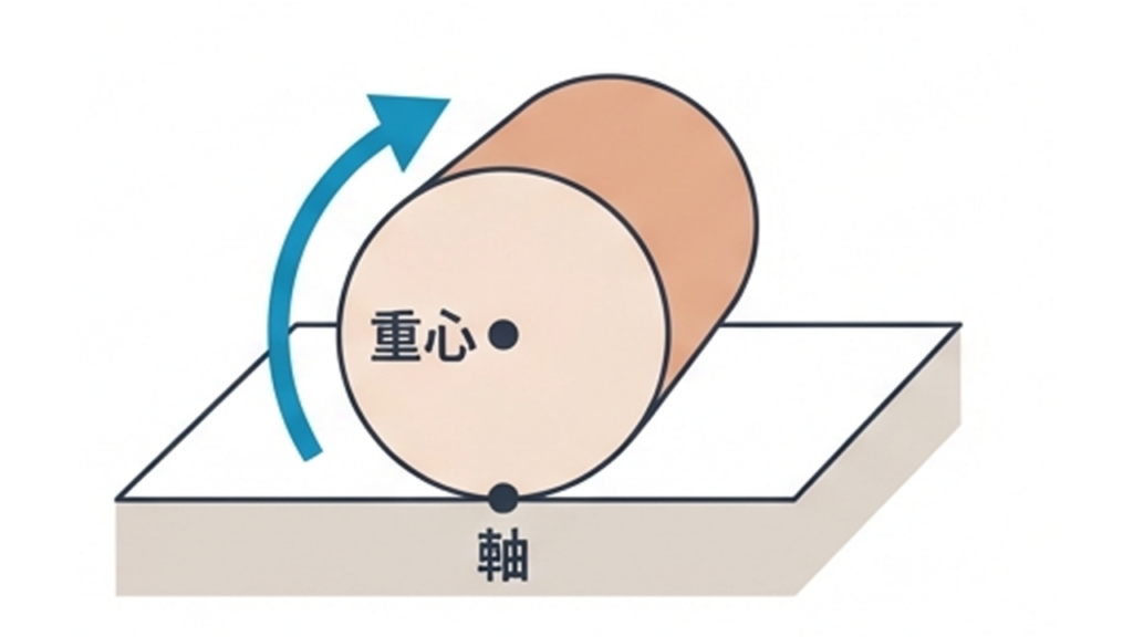 具体的には、支持基底面(身体を支えている面積)を狭くします。その代表的な準備が、“両ひざを揃えて立てる”ことです。足が伸びた広い面積で支えられている状態よりも、両ひざを立てることで身体の接地面は狭くなり、重心が高くなります。物体は支持基底面が狭く、重心が高いほど不安定な状態になり、小さな力でバランスを崩しやすくなる=身体が動きやすくなるのです。