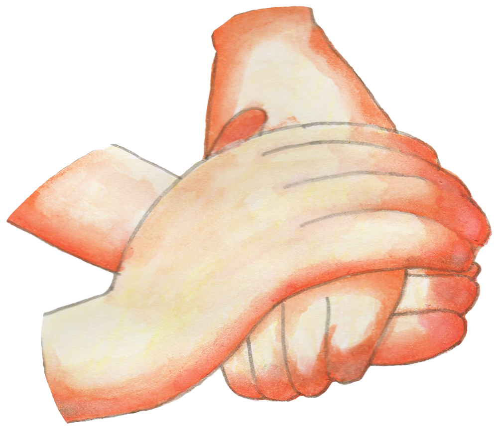 ➡○手のひら全面で広く包み込むようにゆっくりと触れる