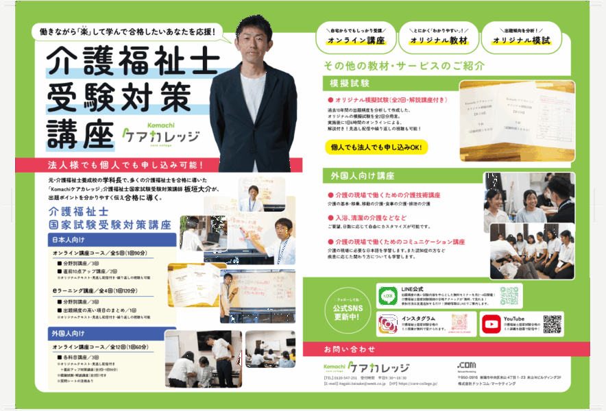 Komachiケアカレッジでは介護福祉士受験対策講座を開講しております!県内の法人さんにも申込みいただき、受講いただいております。
