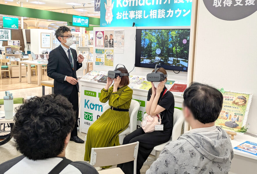 4月21日(火)、アピタ新潟西「Komachi介護転職カウンター」にて、株式会社マルタケ様のご協賛のもと、VRを使った認知症体験イベントを開催しました。