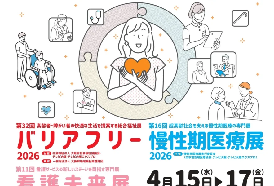 2026年4月15(水)~17(金)にインテックス大阪で初開催される熱中症対策展にて、同会場内で介護・福祉・医療・看護分野の総合展示会である「バリアフリー2026」「慢性期医療展2026」「看護未来展2026」が同時開催されます。