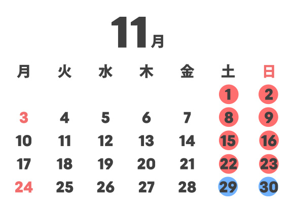 ●赤丸・・・講義 ●青丸・・・実技演習